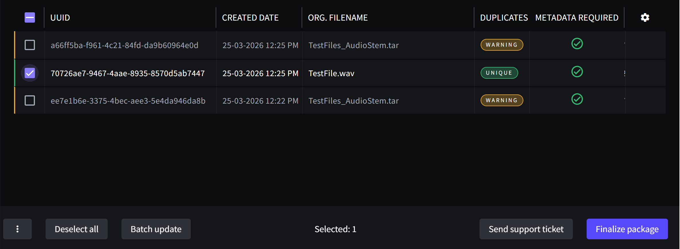 Your package will now be created with all placeholders. Simply drop the files into the corresponding placeholder. Wait for the files to have ingested and hit the submit for approval button.